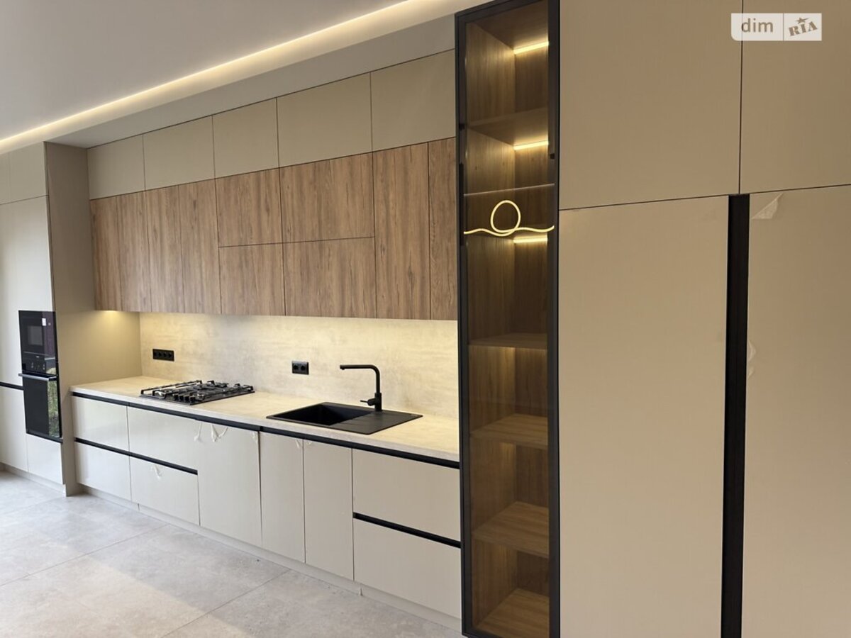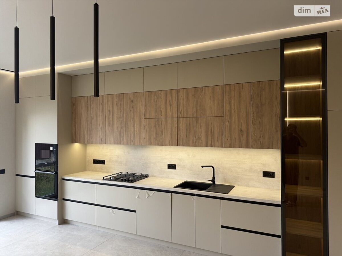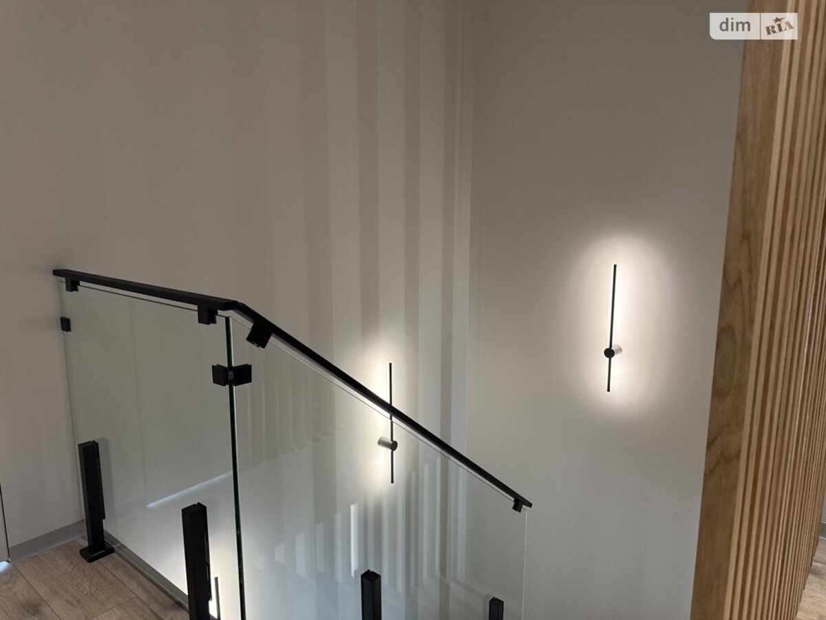 Внутрішній простір продумано до дрібниць: дизайнерські меблі, ексклюзивні оздоблювальні матеріали, тепла підлога, сучасні інженерні рішення та панорамні вікна, що наповнюють будинок природним світлом.