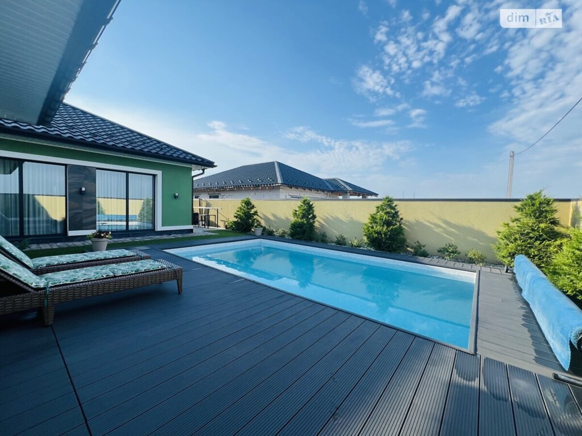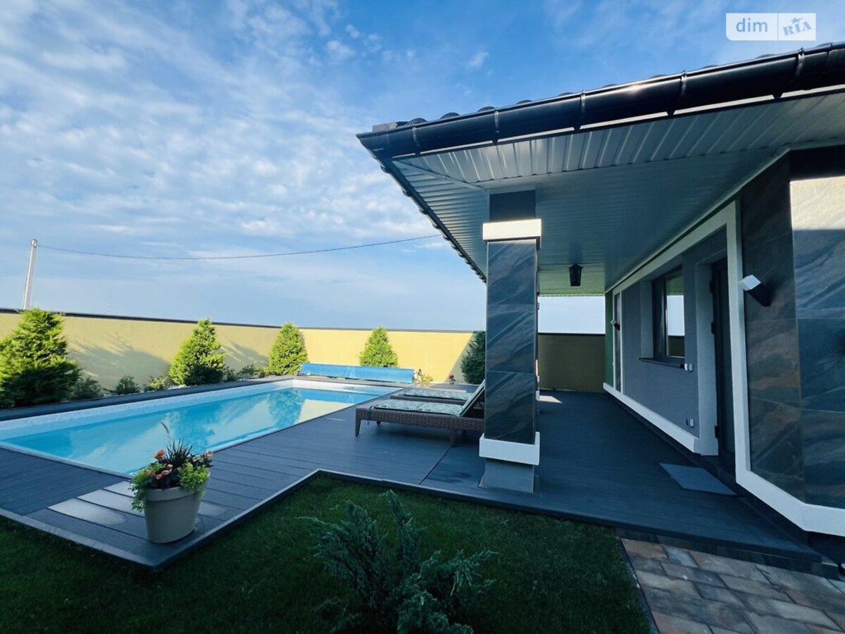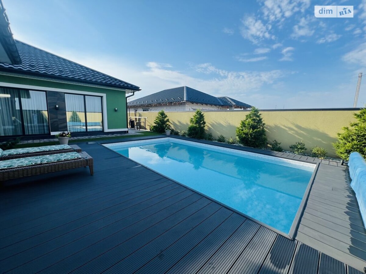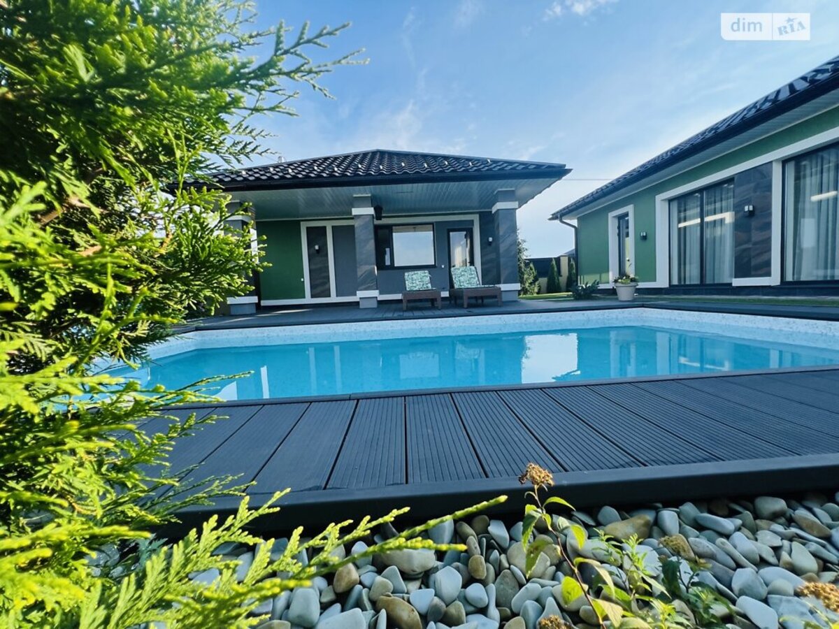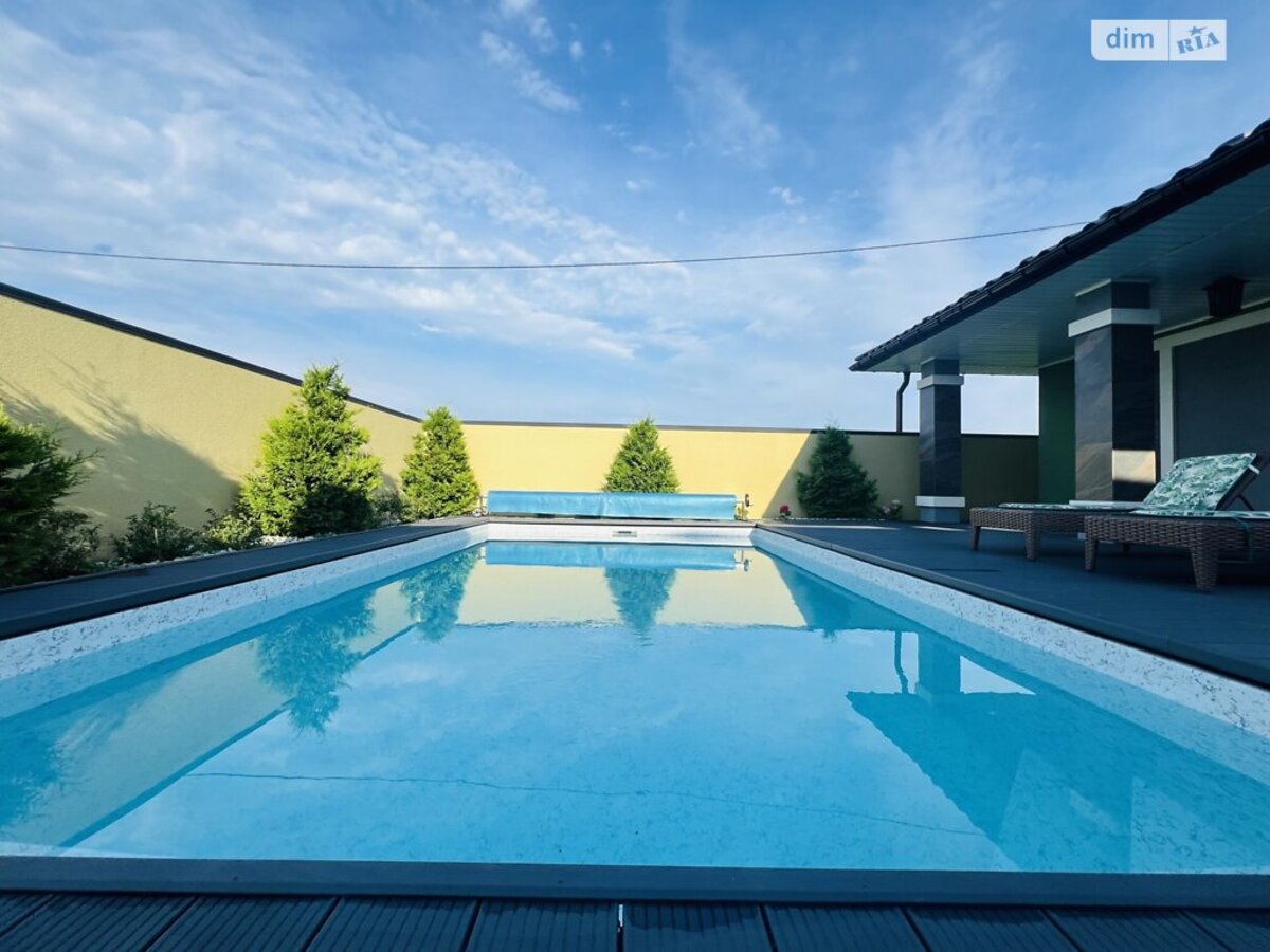 Будинок продається з технікою та меблями, абсолютно всім внутрішнім наповненням. Просто заїзжаєте і все вже є! Дуже гарно та вдало розпланована земельна ділянка! Будинок побудований якісно та з гарних матеріалів. Сучасне планування: кухня студія з вітальнею та виходом на внутрішній двір та до басейну; три спальні кімнати, господарська спальня з гардеробною та ванною кімнатою, котельня з прачечною та ще одна ванна кімната. Глибокий басейн з підігрівом води. Будинок для гостей з каміном та сауною. Додатково є підвал для ваших заготівель. Територія вся облаштована бруківкою. Ландшафтний дизайн лаконічний. Крапельна система поливу по периметру.