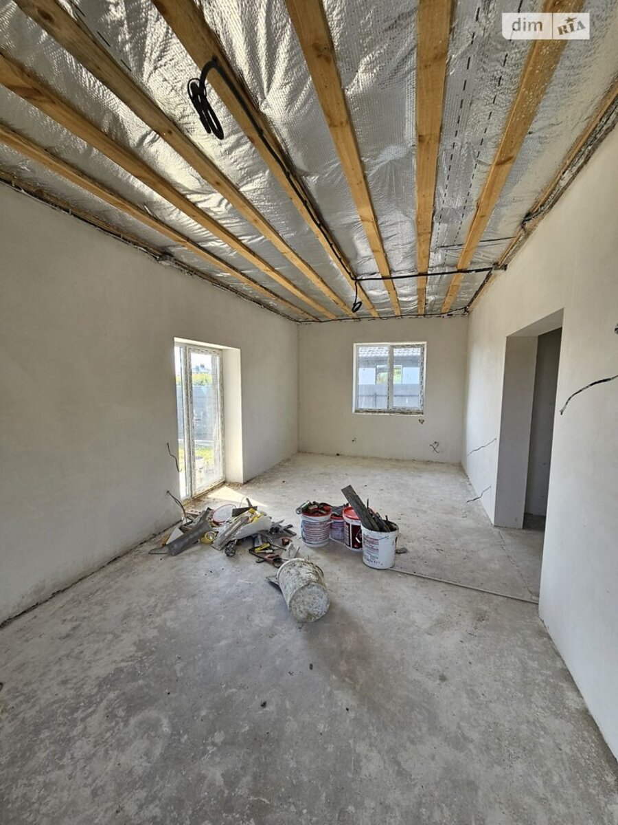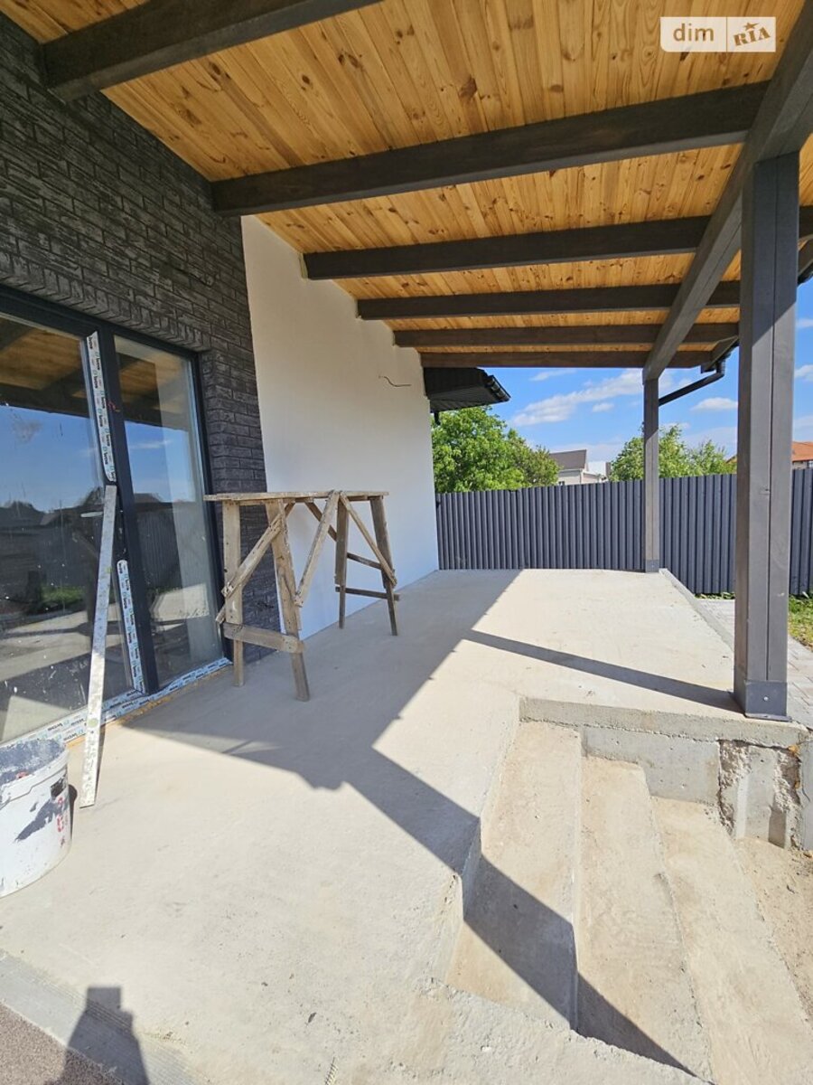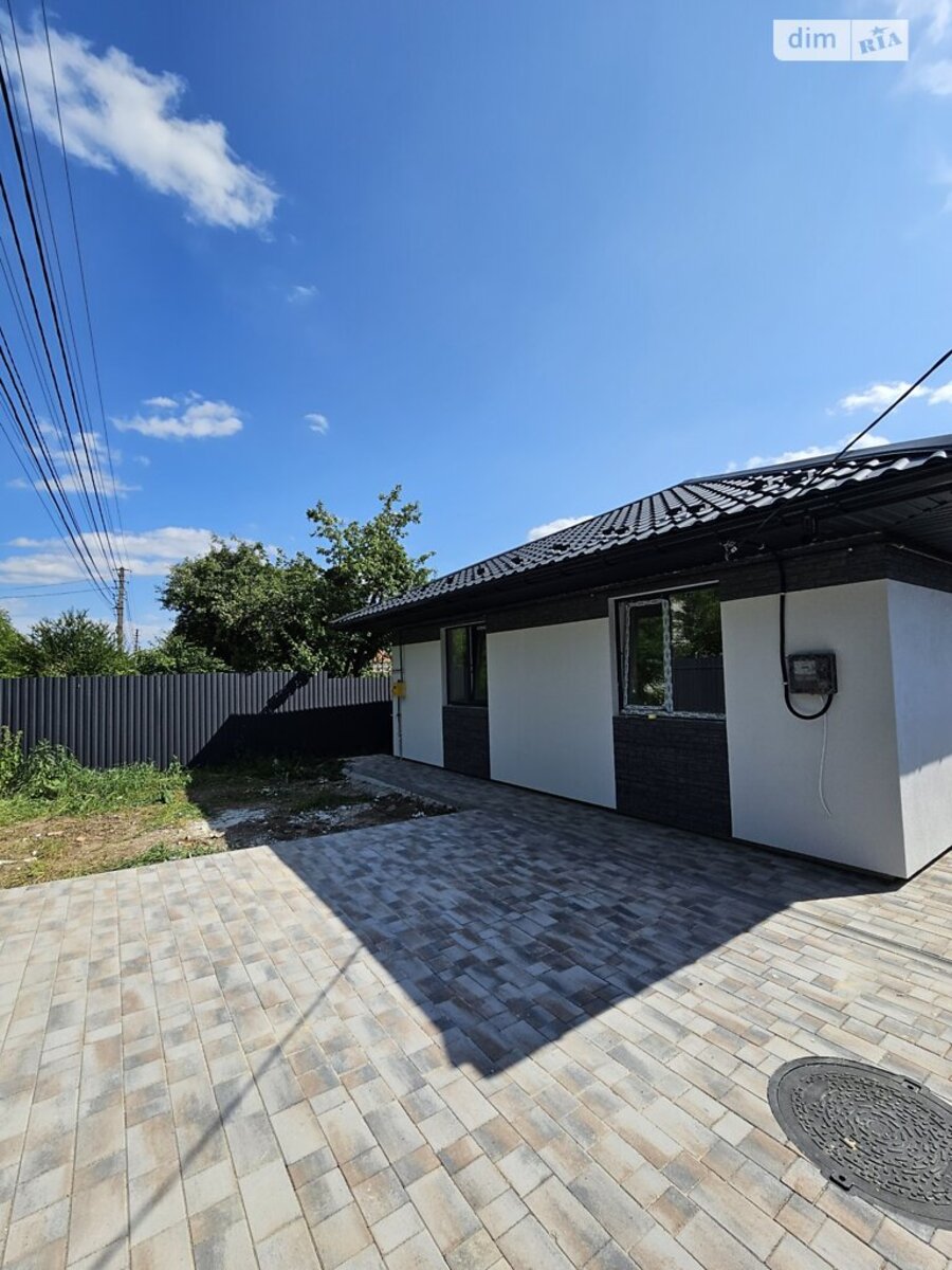Будинок площею 84 м?. Усередині зроблено чистове оздоблення. Будинок має дві спальні кімнати та доволі просторий санвузол площею 8 м?. Зроблено розводку електрики та сантехніки, тепла підлога по всьому будинку, крім спальних кімнат. Побудовано з цегли в півтори цеглини та додаткове утеплення 10 см пінопласту. Зроблено оздоблення фасадів у сучасному стилі. По всьому дворі зроблено бруківку. Великим плюсом є тераса біля будинку площею 21 м?. Паркани по периметру зроблено. Газ проведено, світло 11 кВт, свій колодязь та вигрібна яма. Заселена вулиця та асфальтований під'їзд. Пять хвилин їзди до епіцентру