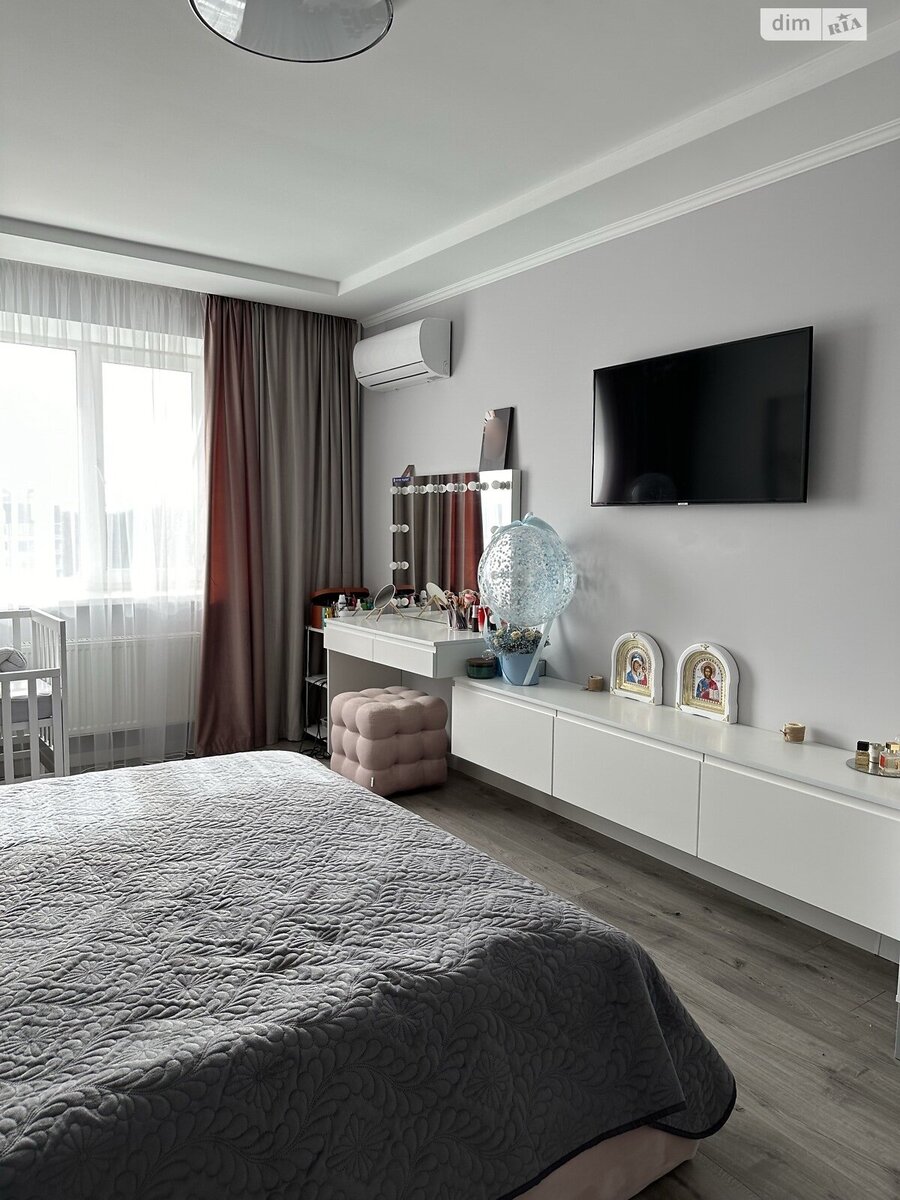 Розташована на 8 поверсі, загальна площа - 103, 2 кв.м, житлова - 56, 4 кв.м, кухня 13, 3 кв.м. Є також власне підвальне приміщення - 10, 1 кв.м Зручне розташування будинку. Тихий двір. Поряд кафе, магазини, дитячі майданчики, школа та парк Сучасна, гарна, ідеальна квартира готова до комфортного життя. Побудовано 2018.