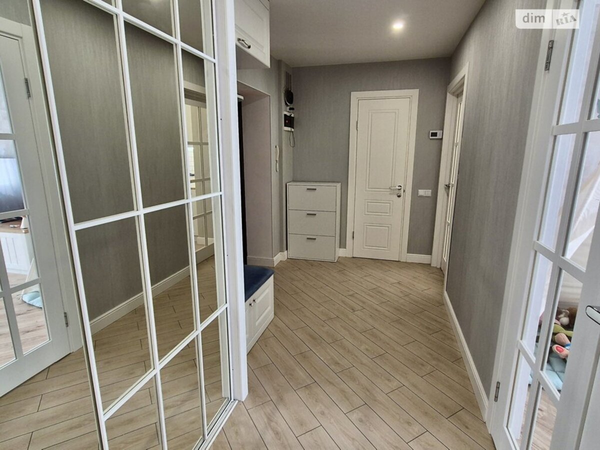 70 м? продуманого простору: 2 великі окремі кімнати, кухня з обідньою зоною та виходом на лоджію, суміжна ванна кімната з душовою кабіною.