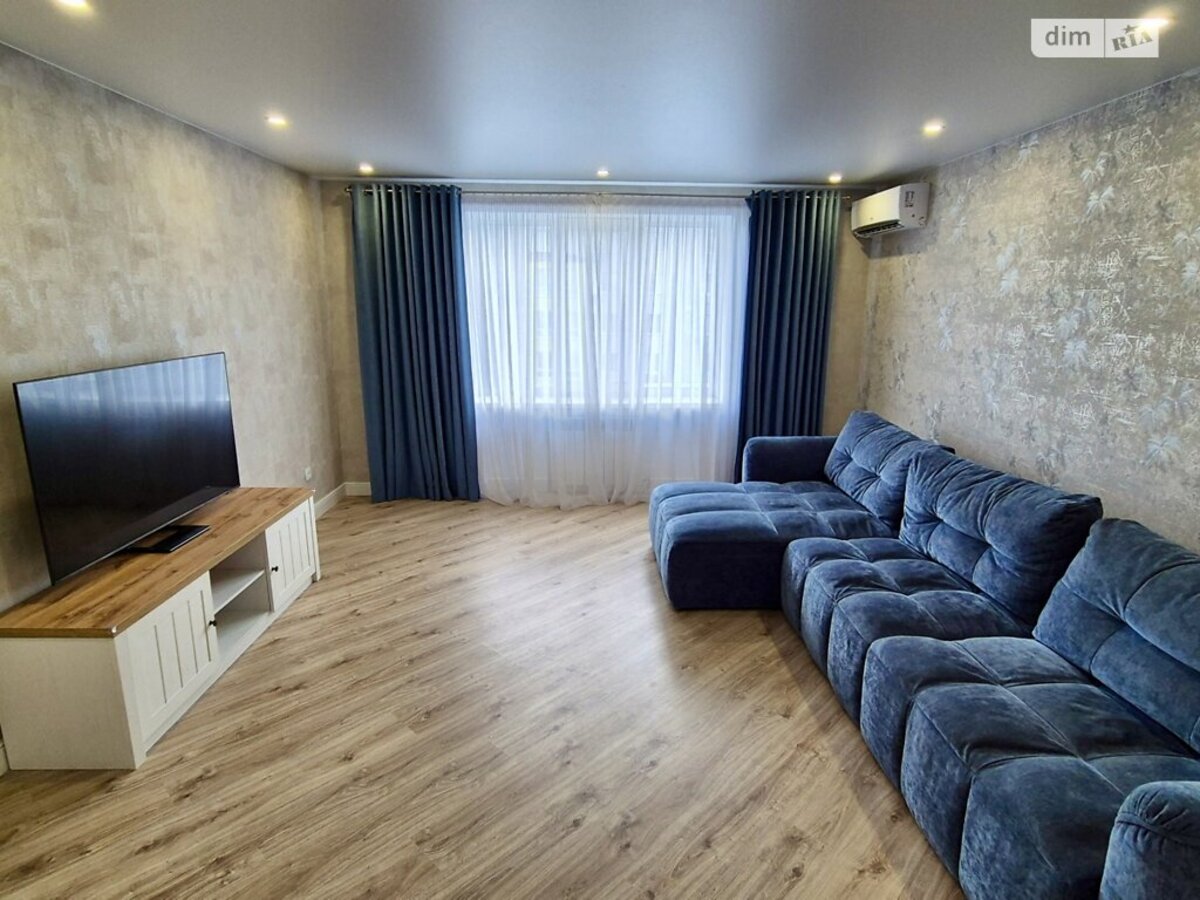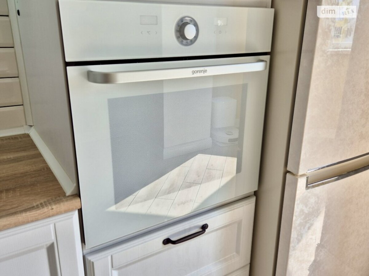 Залишаються сучасні меблі : вбудована кухня, розкладний диван, двоспальне ліжко, шафа-купе, обідній стіл зі стільцями, комоди, тумби та вся необхідна побутова техніка: варильна поверхня, духова шафа, витяжка, холодильник, пральна і сушильна машини, плазмовий ТВ, кондиціонер.