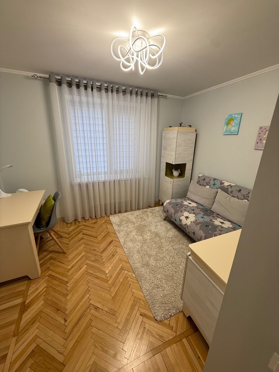 До вашої уваги пропонується сучасна, світла та простора трикімнатна квартира з дизайнерським ремонтом у самому серці Вишеньки в цегляному будинку прямо навпроти алеї. Поруч, в пішій доступності, вся необхідна інфраструктура: дитячі садочки, школи, лікарні, ЦНАП, аптеки, шикарна прогулянкова зона ( алея, лісопарк, вишенське озеро), трамвайна та тролейбусна зупинки, торгові центри, безліч продуктових магазинів, ринок. Біля будинку місця для парковки автомобілів. Квартира складається з трьох кімнат, санвузла, кухні, двох балконів і двох комор. Кімнати: Мастер спальня ( шикарне дизайнерське ліжко з дуже зручним матрасом, телевізор зі смарт ТВ, вихід на балкон з видом на алею, варіанти освітлення), Дитяча кімната (зручний розкладний диван, комод для зберігання речей, шафа для іграшок та книжок, робочий стіл для навчання, розетки з інтернетом), Загальна ( гостьова) кімната ( сучасний зручний розкладний диван, дуже великий телевізор зі смарт ТВ, варіації освітлення, вихід на балкон з видом у двір будинку), Санвузол (сучасна німецька сантехніка, ванна, пральна машина LG, сушка для рушників) Кухня ( газова плита, духова шафа, холодильник, телевізор, кавомашина, котел). В квартирі є два просторі балкони та дві комори для зберігання речей, також вхід в квартиру через тамбур на дві квартири. Квартира оснащена системою безпеки, а також індивідуальним газовим опаленням. Свіжий ремонт, робився для себе, є все необхідне для комфортного проживання..