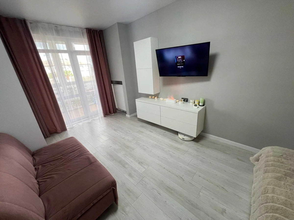 Продаю власну 1-кімнатну квартиру з якісним ремонтом на 4u002F7 поверсі, середня секція, вікна виходять не у двір. Автономне опалення, тепла підлога зі смарт-регуляторами. Засклена лоджія, меблі виготовлені на замовлення,побутова техніка Electrolux, кондиціонер. Квартира повністю укомплектована — можна одразу заїжджати й жити. Поруч розвинена інфраструктура: магазини, аптеки, відділення пошти, банкомат, школа, садочок, зупинка громадського транспорту — усе в пішій доступності..