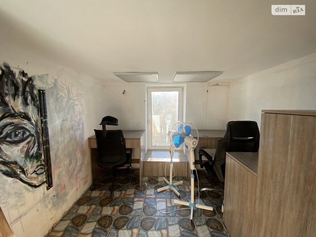 Кабінет рівнем нижче обладнано шафами та робочими поверхнями.