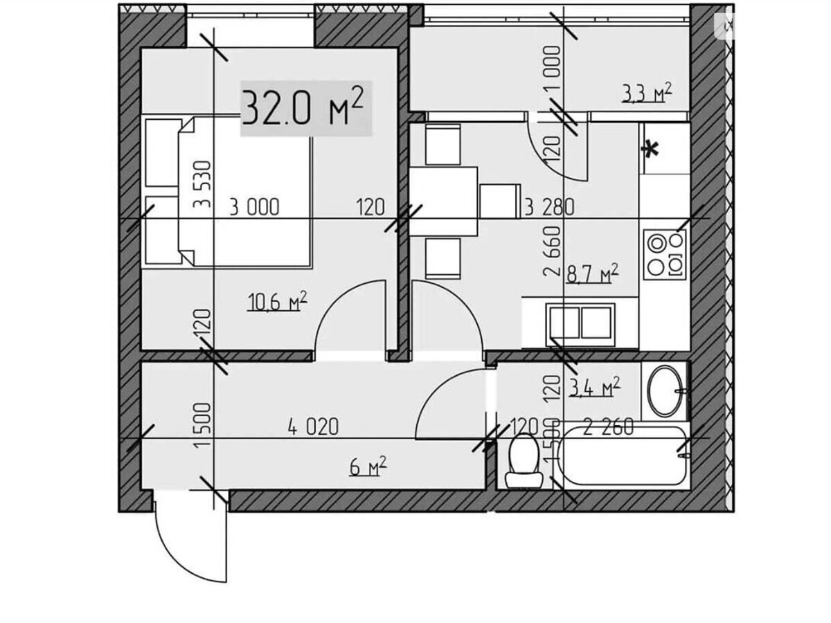 | Площа: | 32 / 32 / 9 м2 |